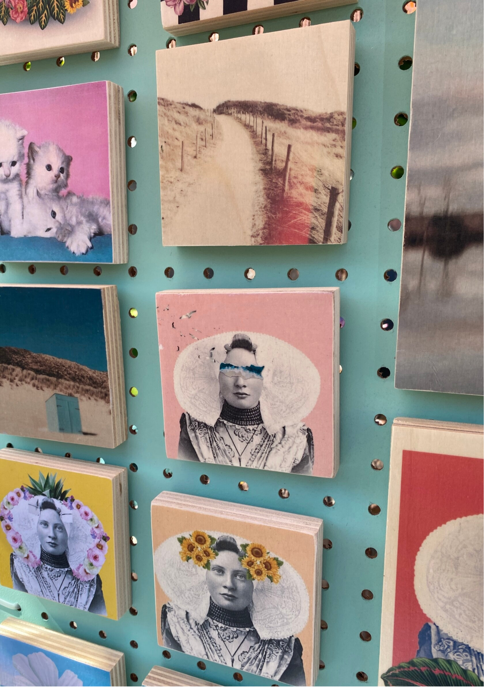 Hier vind je originele kunstwerkjes met zelfontworpen prints op hout. Sommige met een Zeeuws tintje en een beetje gek.