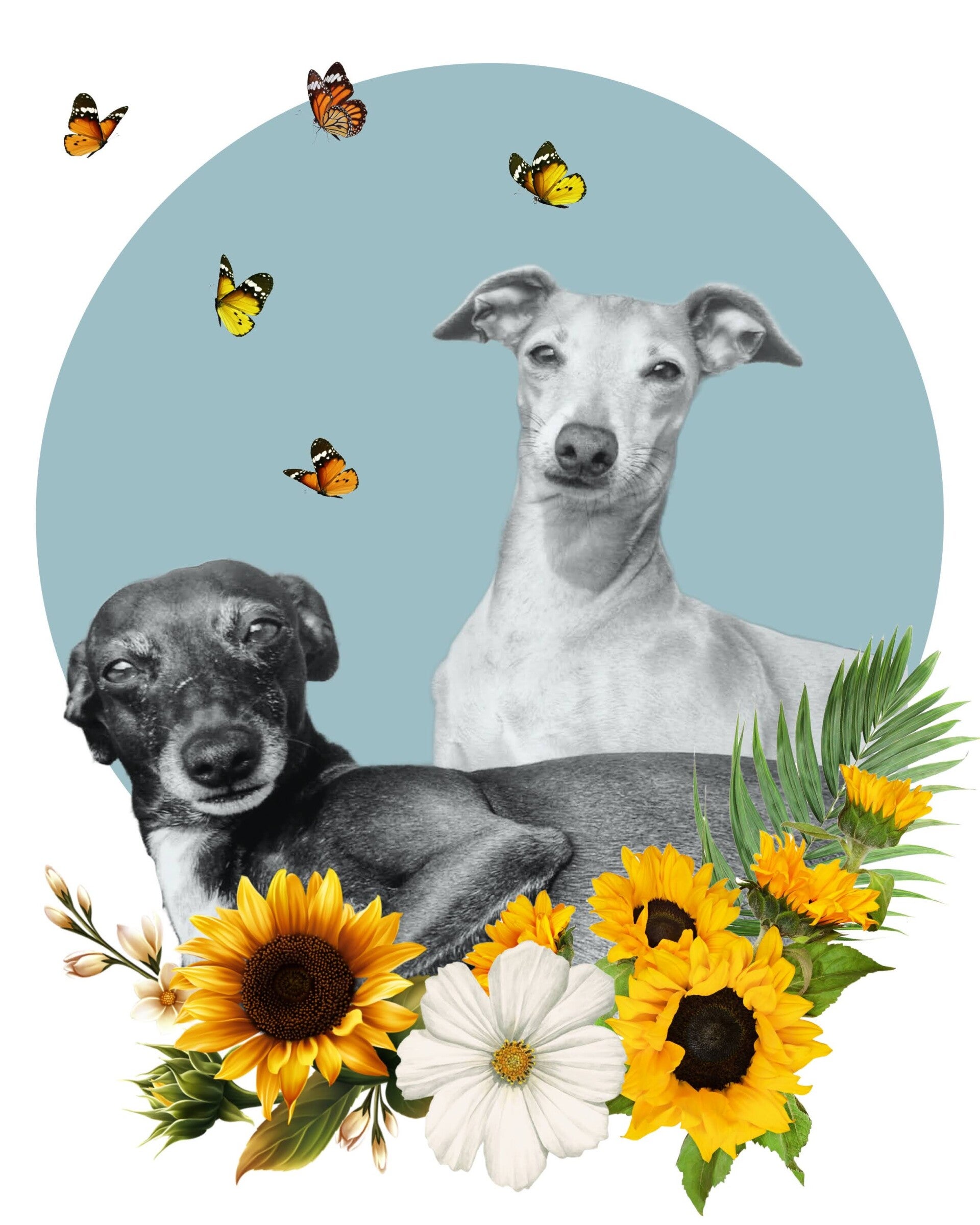 Je portret wordt omgezet in zwart-wit en lijkt op de voorbeelden op de in de designfoto's. Wel zal ik de botanische elementen aanpassen op een manier die bij het portret past.